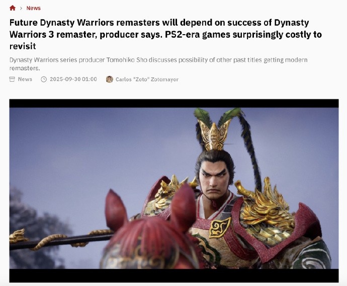真三国无双2重制版制作人表示销售情况不佳将影响后续重制计划