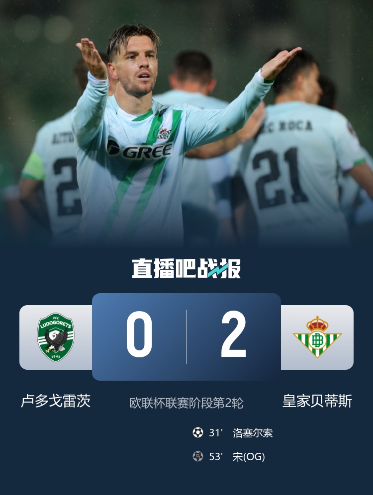 贝蒂斯以二球之差击败卢多戈雷茨 安东尼自行轮休 洛塞尔索展现锋芒 菲尔波助攻对方自塞