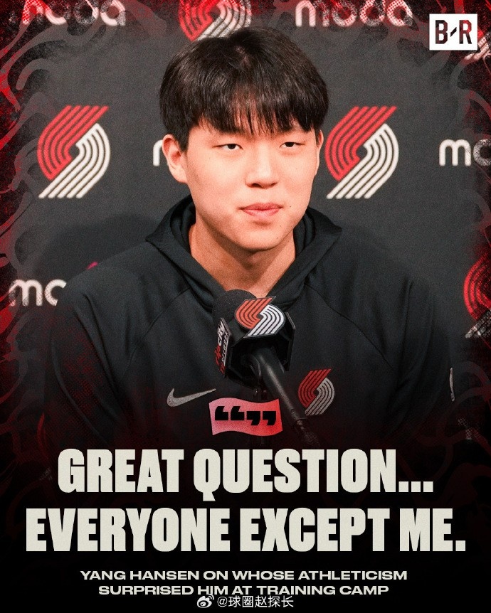 10月4日訊,知名媒體人球權趙探長分享了一張關於楊瀚森的言論海報,顯示出楊瀚森的觀點引起了廣泛關註。最近的一份海報是由BR媒體制作的。當記者詢問他在訓練營中印象最深刻的隊友天賦時,楊瀚森幽默地表示:“除了我,大家都能跑能跳。”