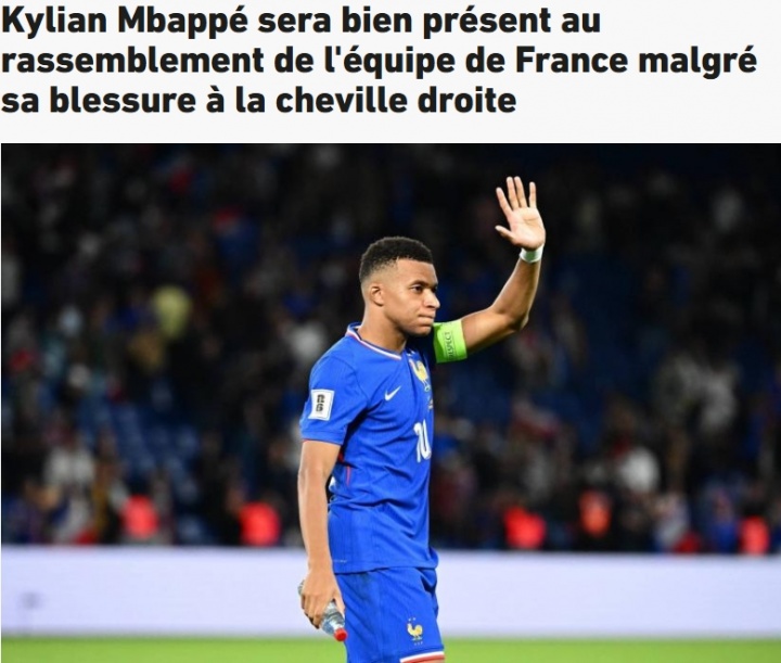 報道指出,姆巴佩計劃在當地時間周一與法國隊友一起前往克萊楓丹,準備參加10月份的國際比賽。法國國家隊將於周一開始訓練,接下來將在世預賽中迎戰阿塞拜疆和冰島。
